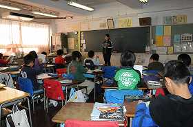 資料を整理する学習として、沖縄の歌に使われている楽譜を見て、何の音がいくつ使われているかを表にまとめていきます。