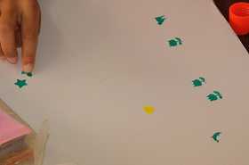 スタンプを使って好きな模様を打ち出し、その部品を使って、自分だけのすごろくを作っていきます。