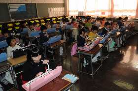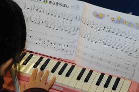 鍵盤ハーモニカの練習をしています。