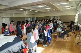 「ゆかいに歩けば」の練習をしています。