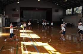 ドッジボールのゲームをしています。