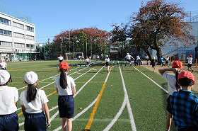 ハードル走の練習をしています。