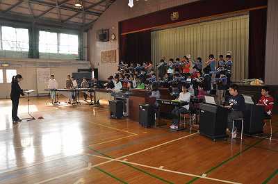 連合音楽会で演奏する合奏の練習をしています。