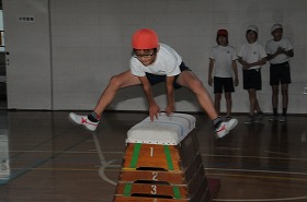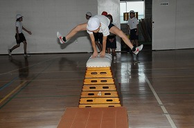 跳び箱運動の練習をしています。