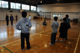 体育委員会が担当する次のなの花タイムの準備をしています。