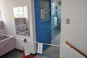 トイレの戸を順番にペンキで塗っていきます。