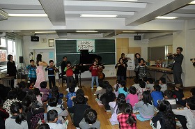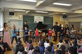 3人の演奏家が、4年生の子どもたちに生の演奏を聴かせてくださいました。