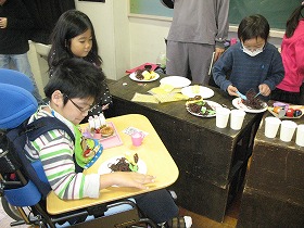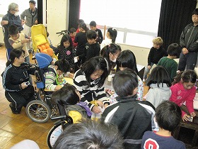 2年1組とわかたけ学級の子どもたちが交流しています。