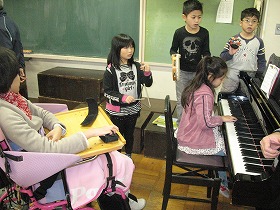 2年1組とわかたけ学級の子どもたちが交流しています。