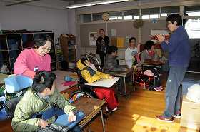 四中の校長先生が見守る中、朝の会が進んでいます。