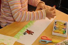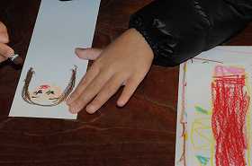 「広がるお話の世界」をテーマに、自分で広げた話を絵に描いています。