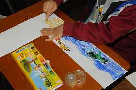 「広がるお話の世界」をテーマに、自分で広げた話を絵に描いています。
