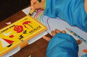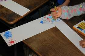 「広がるお話の世界」をテーマに、自分で広げた話を絵に描いています。