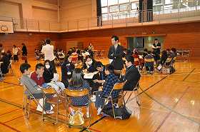 第四中学校の2年生、そして油面小、不動小の6年生が四中に集まり、第2回いじめフォーラムを行いました。10月22日の第1回いじめフォーラム「講演会」を受けた今回の話し合いでは、講師の伊東先生からの三つの課題「講演会を聞いて感したこと、自分が見つけた身近な優しさ、いじめについて今自分が考えること、やるべきこと」を中心に意見を述べ合いました。三つの学校の子どもたちが入った20グループで、中学生が中心になり話し合いを進めました。