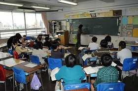 小数のわり算の筆算のやり方を確かめています。