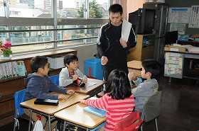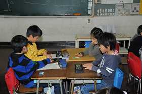 わかたけ学級との交流で何をしたいかを班ごとに相談しています。