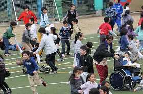 全校でしっぽ取りゲームをしています。
