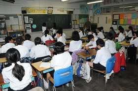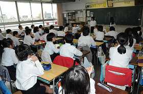なの花まつりのクラスの出し物を考えています。着ているのは、連合音楽会の衣装です。