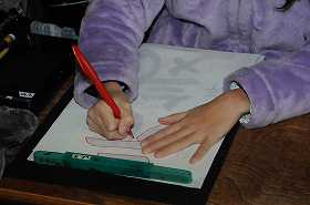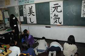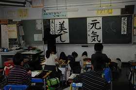 書き初めの練習をしています。