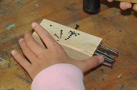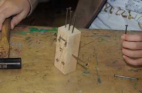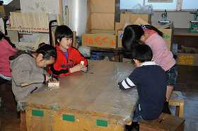 「カクカクともだち」をテーマに、くぎうちを使って、木材を組み合わせながら友だちを作っています。