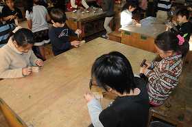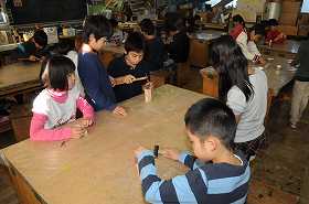 「カクカクともだち」をテーマに、くぎうちを使って、木材を組み合わせながら友だちを作っています。