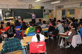 今日から始まる「なかよしマラソン」の目標を確かめています。