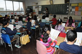 「ずっとずっとだいすきだよ」をみんなで音読をしています。