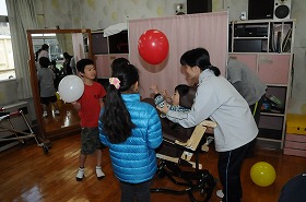 2年2組とわかたけ学級の子どもたちが交流遊びをしています。