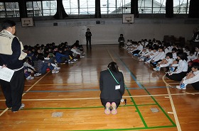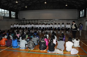 連合音楽会が7日に迫ってきました。今日は、本校伝統の、6年生が5年生にアドバイスをする日です。5年生の演奏が仕上がってきた段階で、6年生が5年生にアドバイスをすることで、より質の高い演奏を目指していきます。写真は、6年生が5年生にアドバイスをしている場面です。細かいアドバイスをしています。