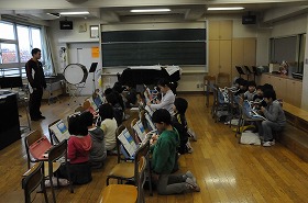 音楽室に着くと同時に、自分たちで「ぷっかりくじら」の練習を始めました。