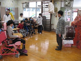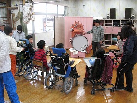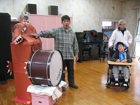 みんなで交代しながら、ゴムの力を使った発射台で的当てをしています。