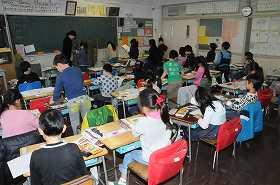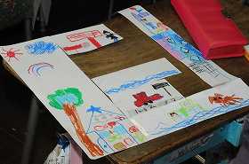 「お話を広げよう」で、自分の考えたお話を絵に表しています。絵が完成したらみんなの前で発表です。