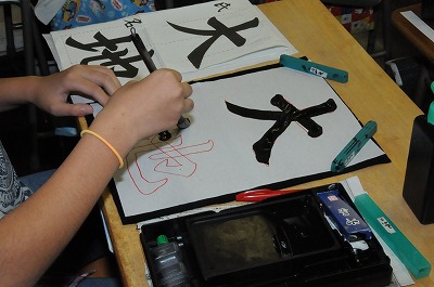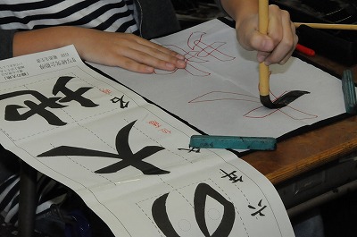 書き初めの練習をしています。