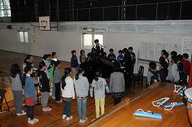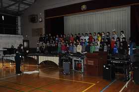 寒い朝です。子どもたちは合奏のパートに分かれた練習から始めています。その後全体で合わせる練習に移っています。