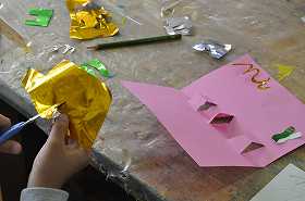「ハッピーカード」をテーマに、相手がもらって幸せになるカードを作っています。