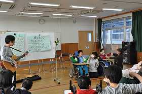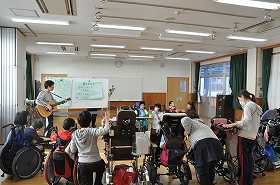 わかたけ学級が、「ハイハイハイ」と「君はともだち」の歌を披露しています。