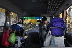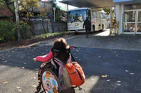 今日は、わかたけ2組の子どもたちが都立光明特別支援学校の友だちと交流します。学校を出発し、光明特別支援学校に向かいます。1組の先輩が見送ってくれました。バスの仲で出し物のリハーサルをしています。