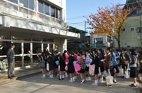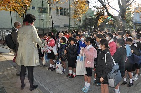 連合音楽会の朝です。会場に向かう前に出発式をしています。
