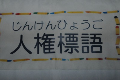 人権週間にあわせて子どもたちが考えた人権標語です。教室の廊下に掲示してあります。