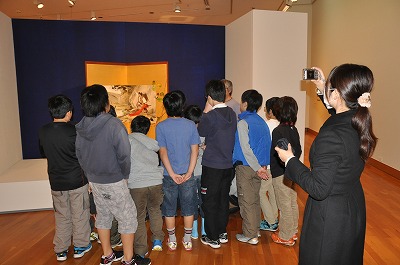 6年生が目黒区美術館で学芸員の方から展示作品の説明を受けながら鑑賞しています。