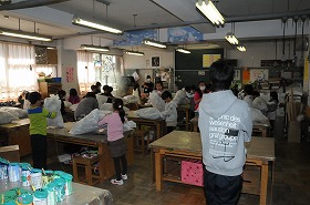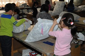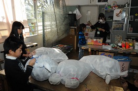 「たのしい 友だち」をテーマに、大きな袋を楽しい友だちに変身させています。