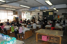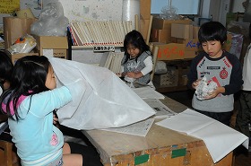 「たのしい 友だち」をテーマに、大きな袋を楽しい友だちに変身させています。