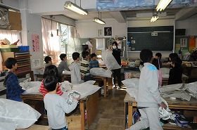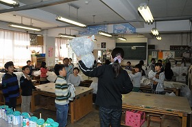 「たのしい 友だち」をテーマに、大きな袋を楽しい友だちに変身させています。
