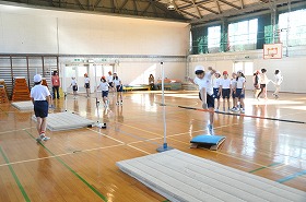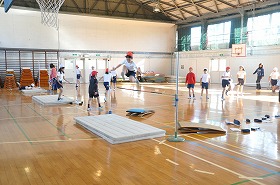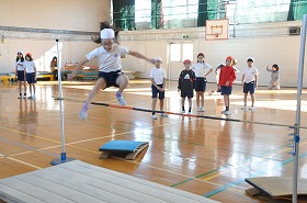 走り高跳びの練習をしています。