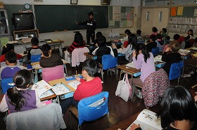 書写で、点の書き方を練習しています。