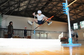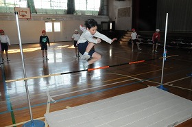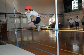 走り高跳びの練習をしています。