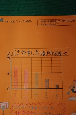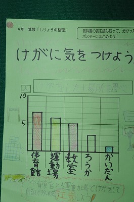 けがが起こる場所について調べ、まとめた資料をもとにポスターを作っています。