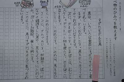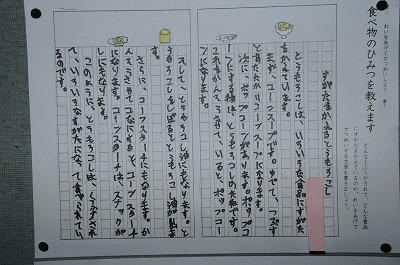 「食べ物のひみつを教えます」をテーマに、「すがたをかえる○○」を自分で調べ、まとめました。