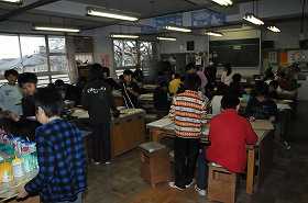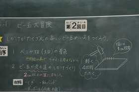 「ビー玉大冒険」をテーマに、仕掛けがたくさんのビー玉迷路を作っています。今日は設計図を木に写し、色を塗っています。