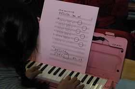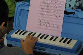 鍵盤ハーモニカで「ひげじいさん」を練習しています。